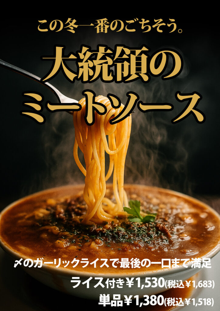 5種のパスタソースをブレンドしたスープに宇都宮で一番濃厚なミートソースを追い掛けした【飲むミートソース】ガーリックライスを残ったスープにダイブして〆のリゾットとしてお楽しみください。