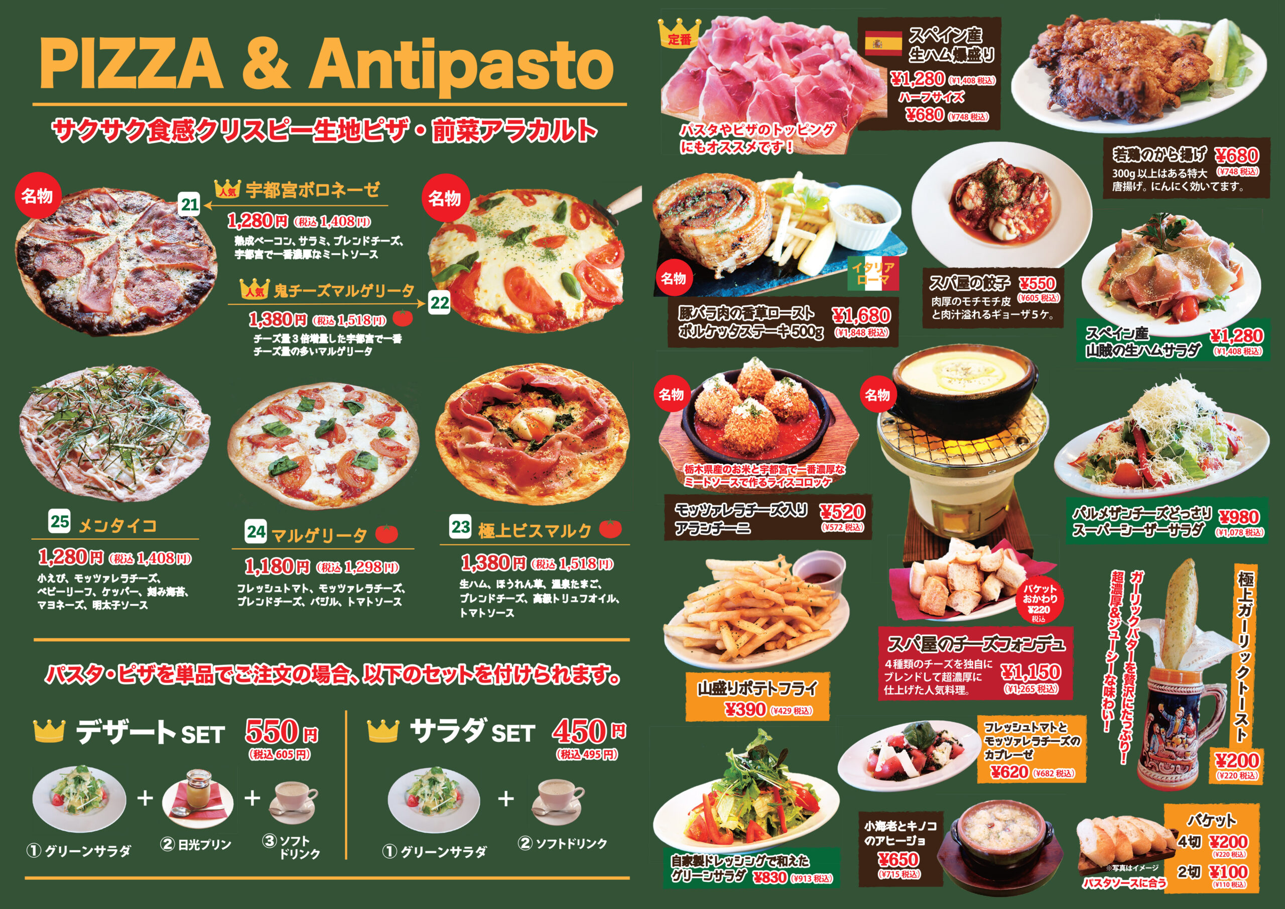 全てのメニューからお好きなパスタ又はピザをお選びください。
